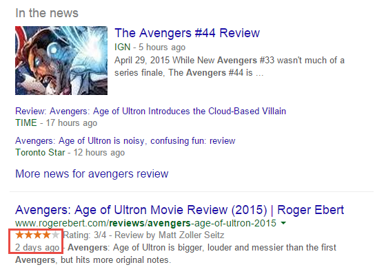 Google have claimed that structured data “has no direct effect on SEO”. This is a fairly cryptic message. Rich snippets are treated differently to regular listings - you can see this in the image above. The review above was written two days ago but is already ranked in at #1 after the news. You also won’t appear in the news listings without marking your website up with some basic structured data.