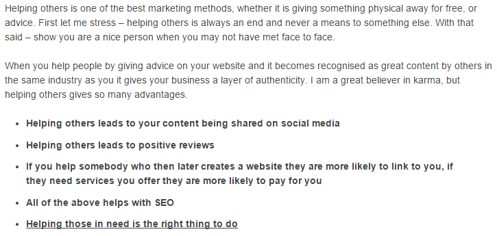 Going further than this - if I help you for free over social media, do a good job and you get a large piece of SEO work you need doing, you won’t shop around. I will be you first point of call.